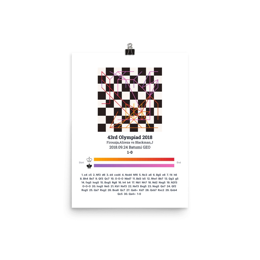 Museum-quality poster on thick, durable matte paper. A sharp, clean look for any chess visualisation.