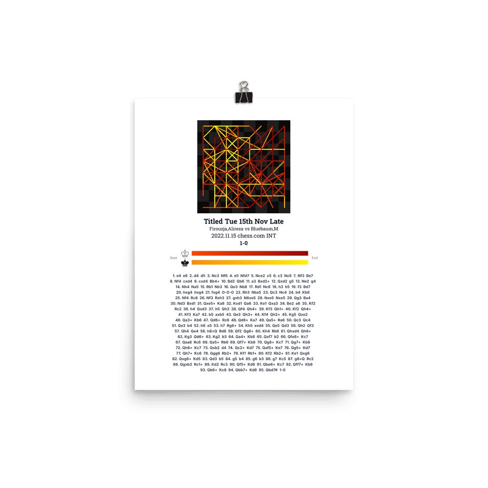 Museum-quality poster on thick, durable matte paper. A sharp, clean look for any chess visualisation.