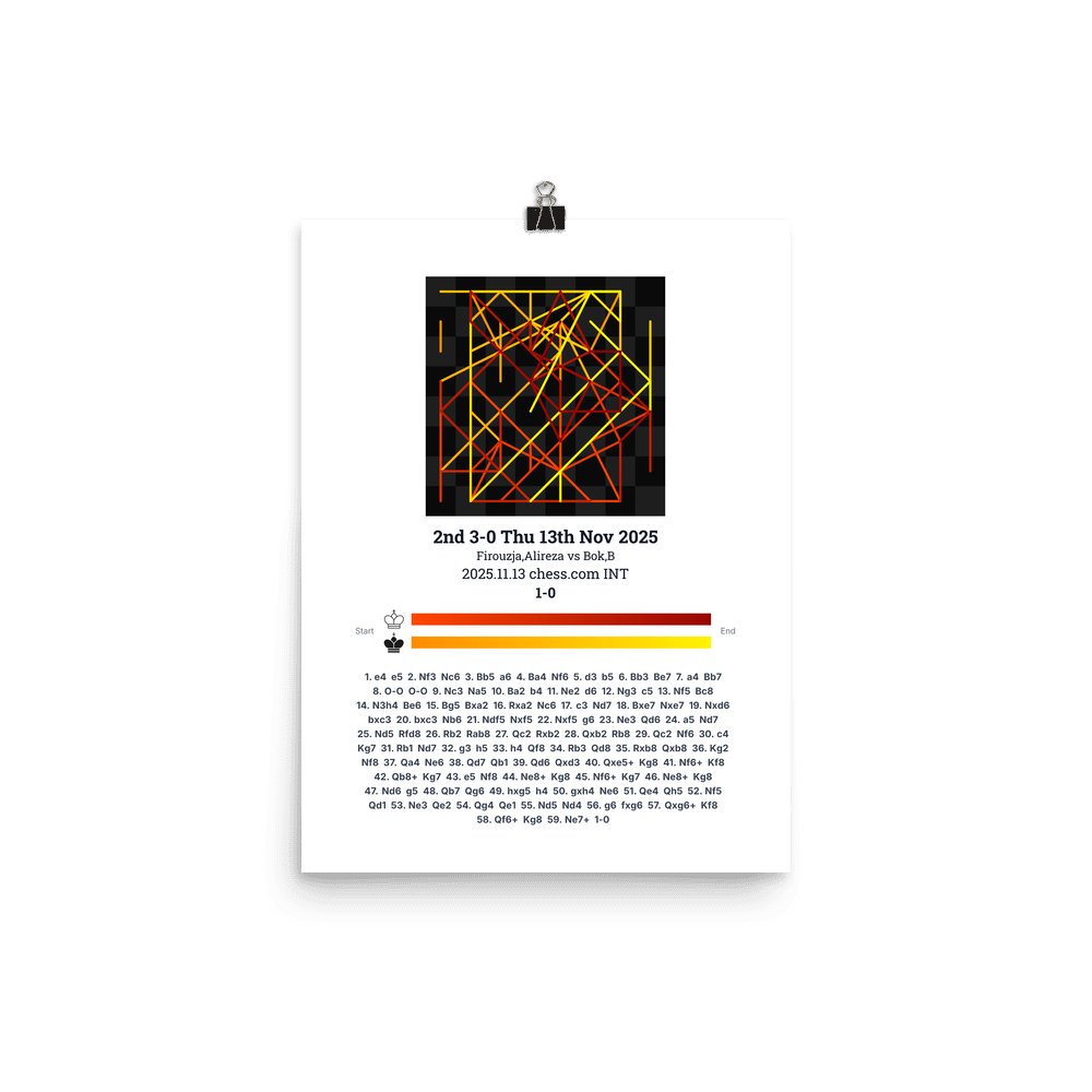 Museum-quality poster on thick, durable matte paper. A sharp, clean look for any chess visualisation.