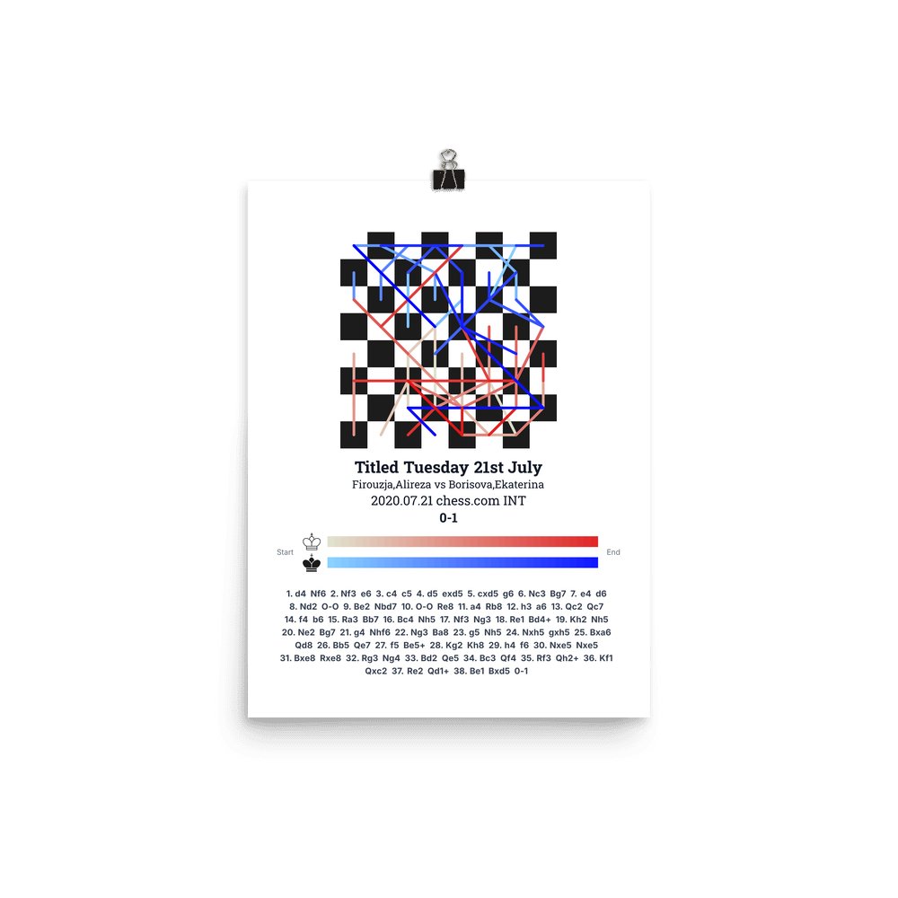 Museum-quality poster on thick, durable matte paper. A sharp, clean look for any chess visualisation.