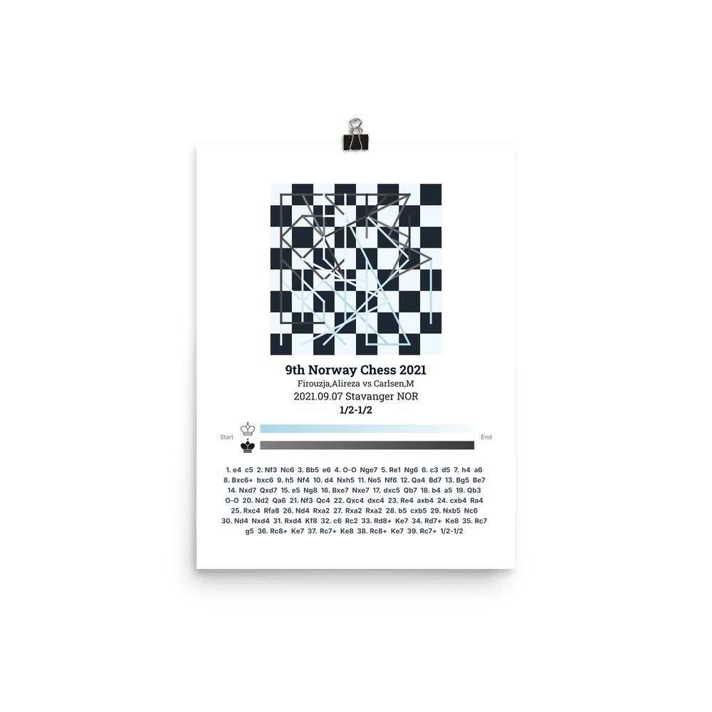 Museum-quality poster on thick, durable matte paper. A sharp, clean look for any chess visualisation.