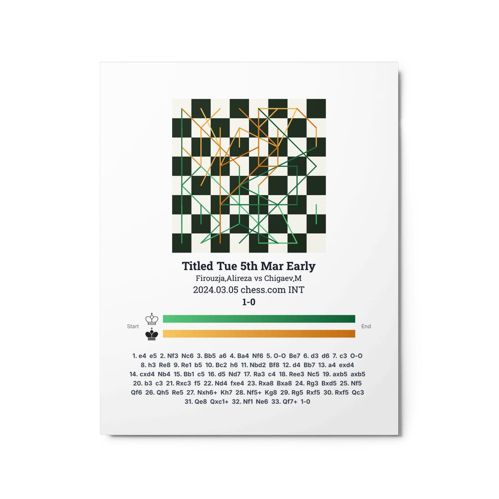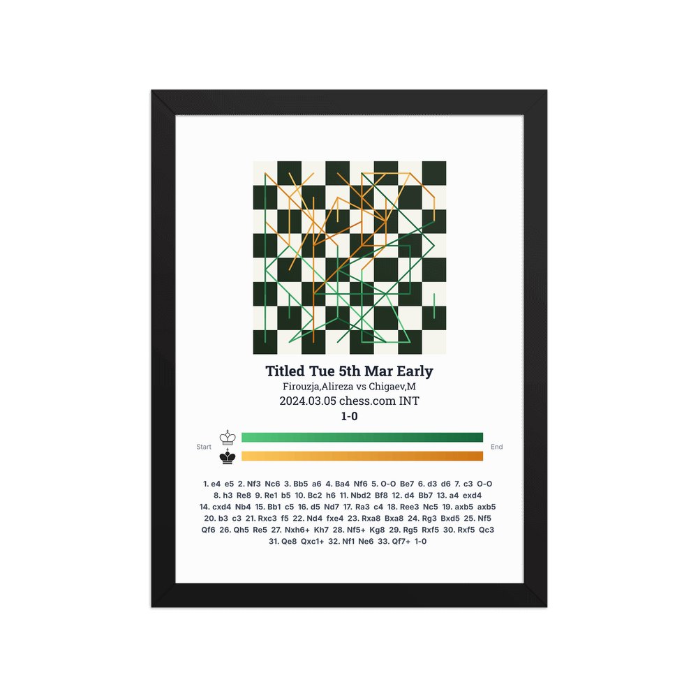 Museum-quality poster on thick, durable matte paper. A sharp, clean look for any chess visualisation.