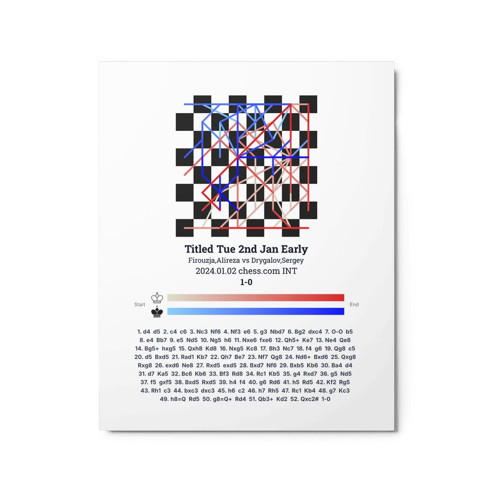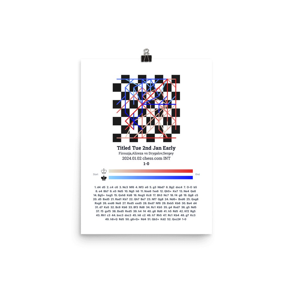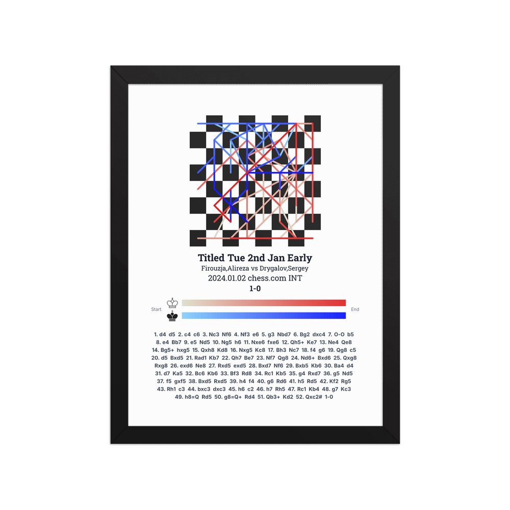 Museum-quality poster on thick, durable matte paper. A sharp, clean look for any chess visualisation.