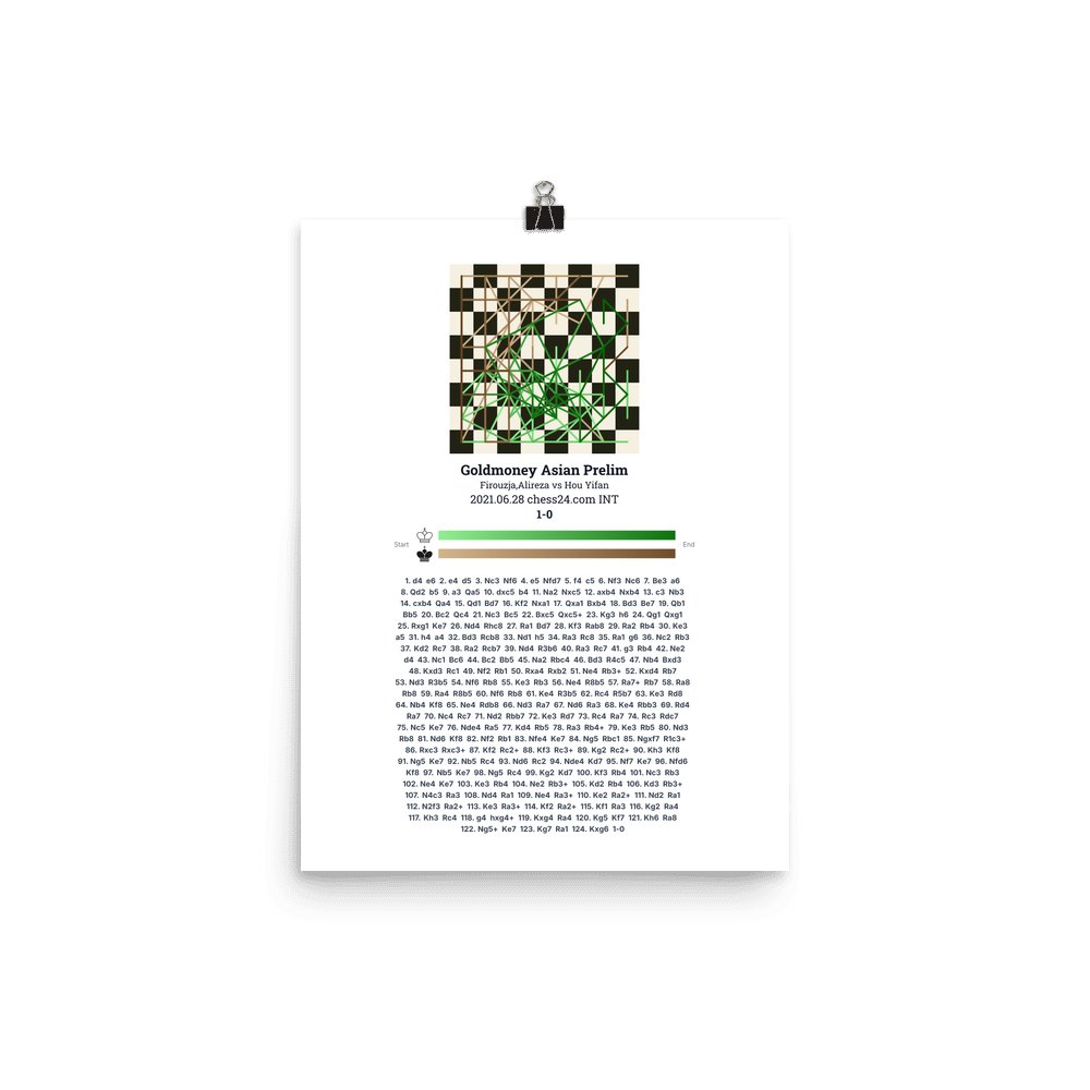 Museum-quality poster on thick, durable matte paper. A sharp, clean look for any chess visualisation.