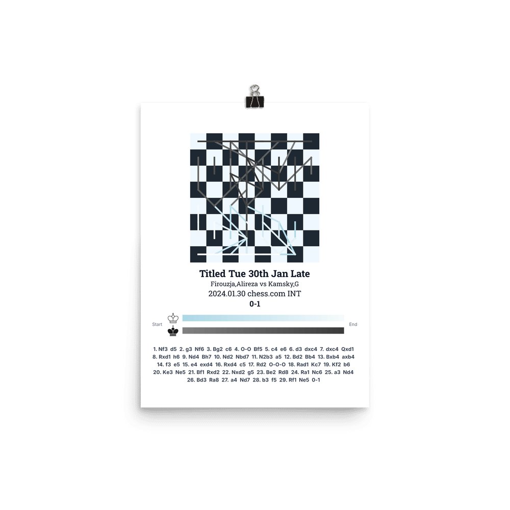 Museum-quality poster on thick, durable matte paper. A sharp, clean look for any chess visualisation.