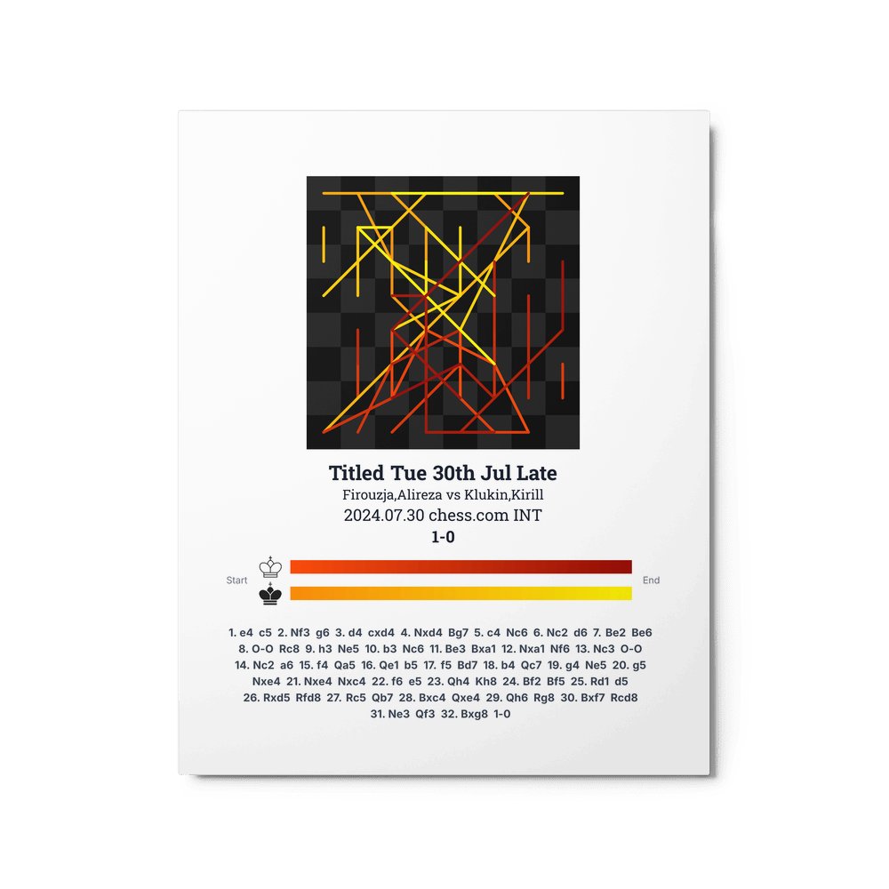 Museum-quality poster on thick, durable matte paper. A sharp, clean look for any chess visualisation.