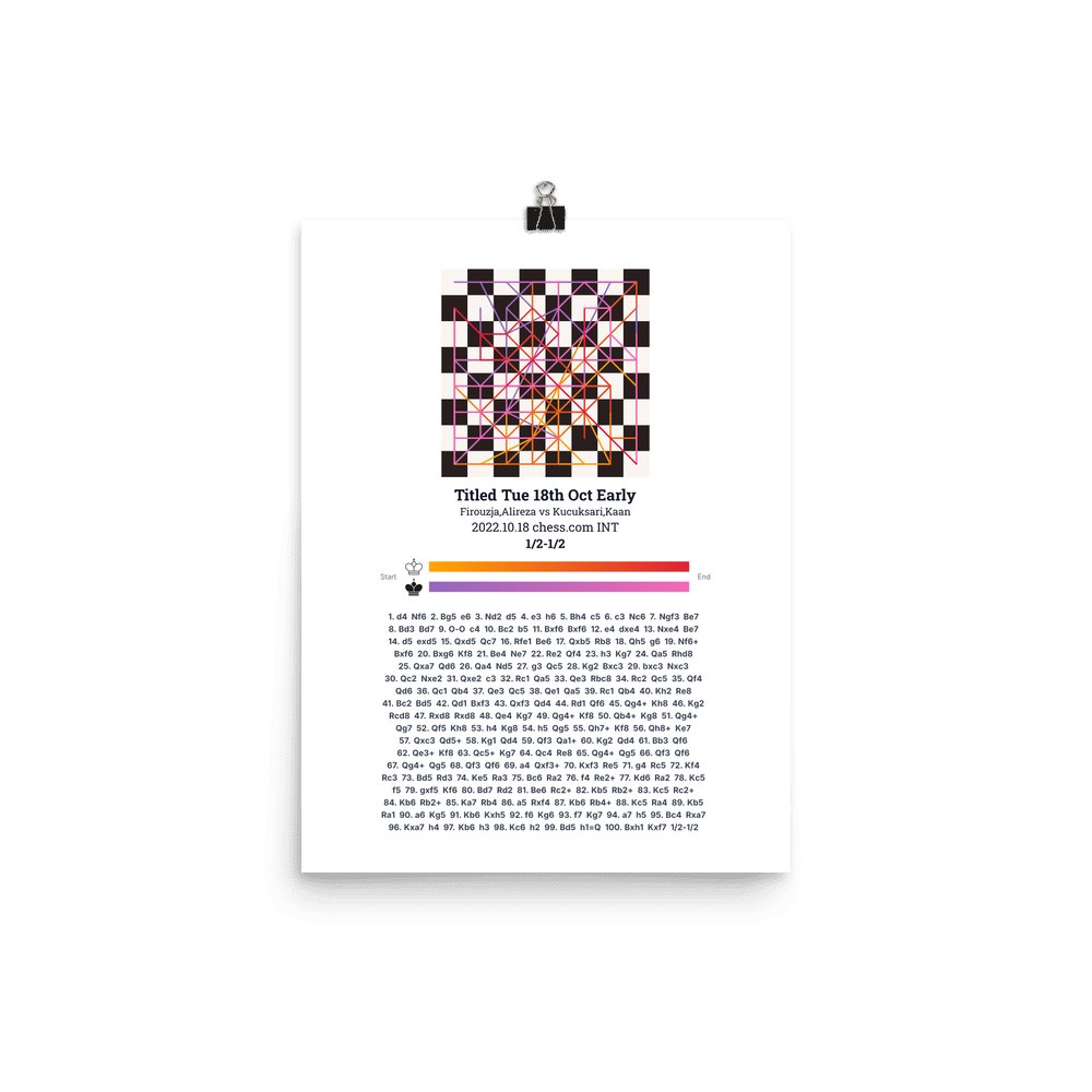 Museum-quality poster on thick, durable matte paper. A sharp, clean look for any chess visualisation.