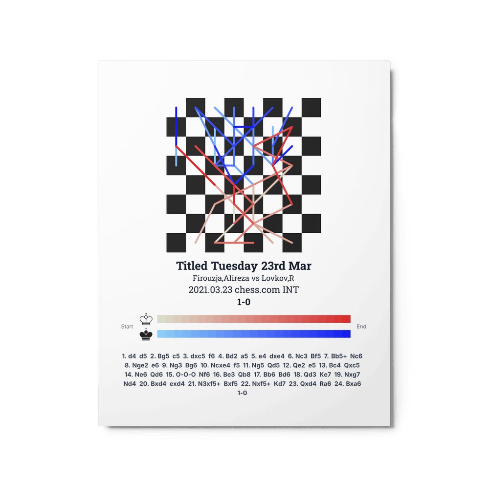 Museum-quality poster on thick, durable matte paper. A sharp, clean look for any chess visualisation.