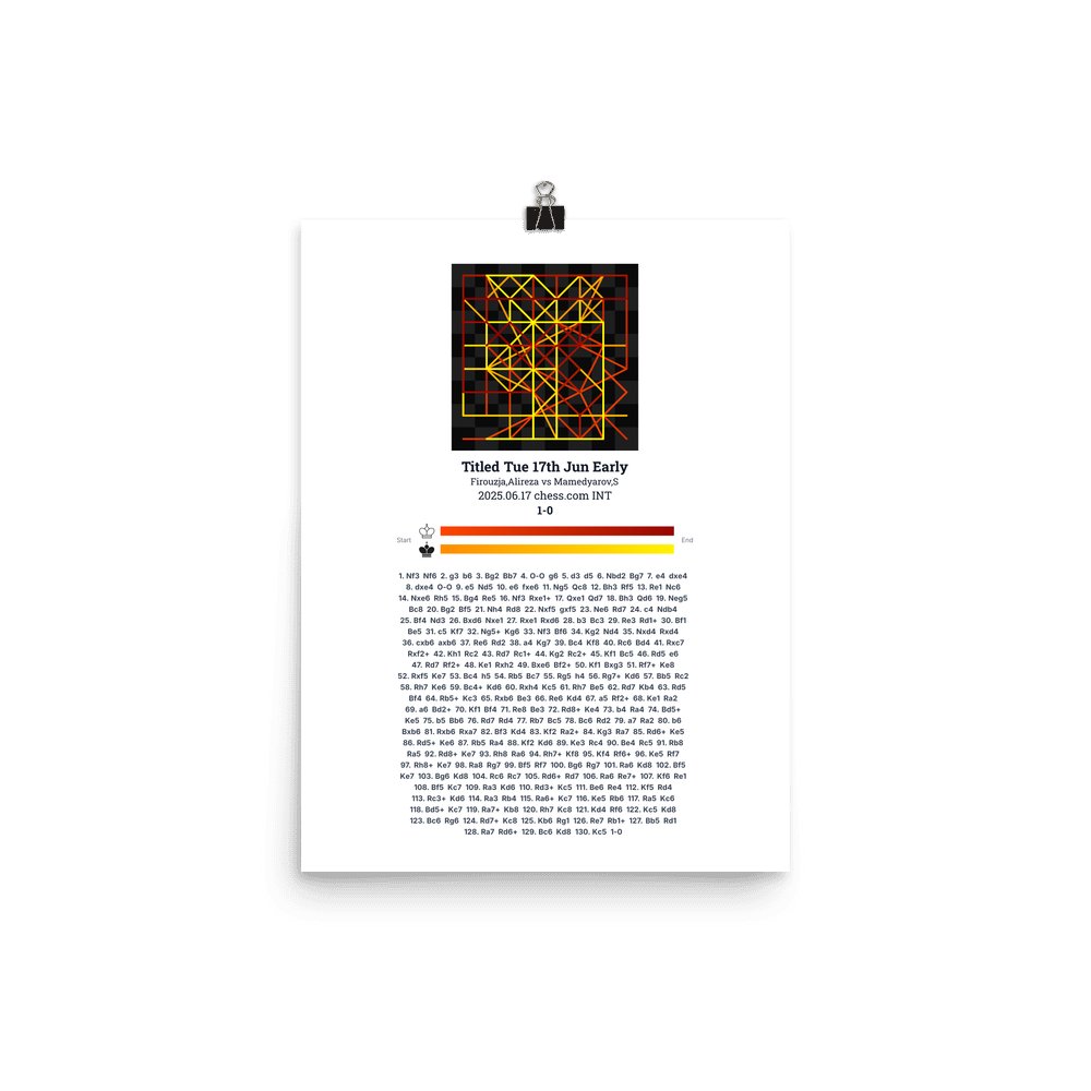 Museum-quality poster on thick, durable matte paper. A sharp, clean look for any chess visualisation.