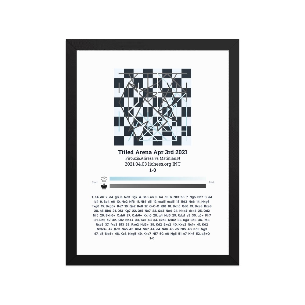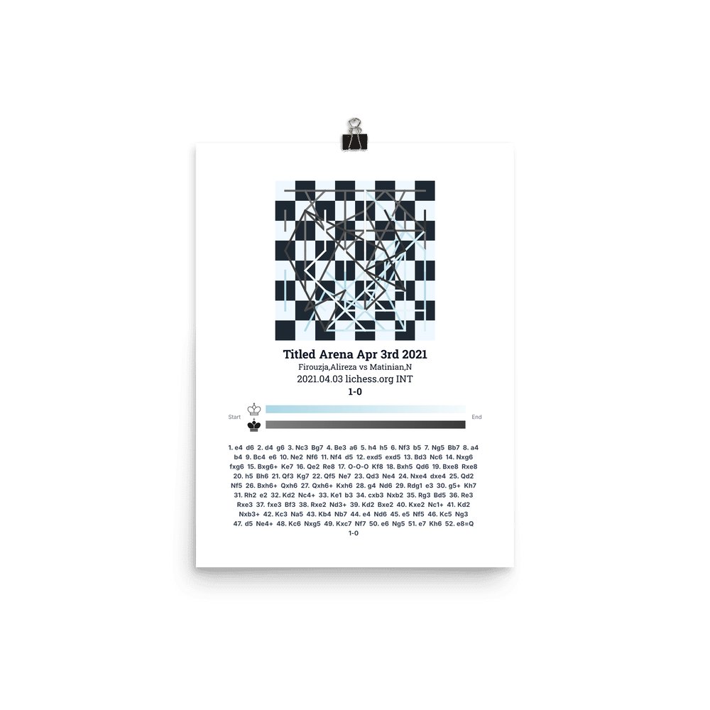 Museum-quality poster on thick, durable matte paper. A sharp, clean look for any chess visualisation.
