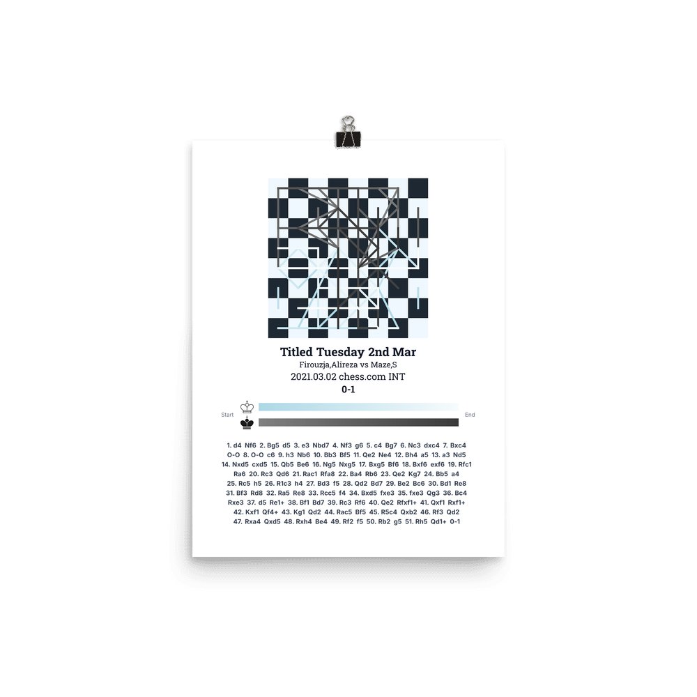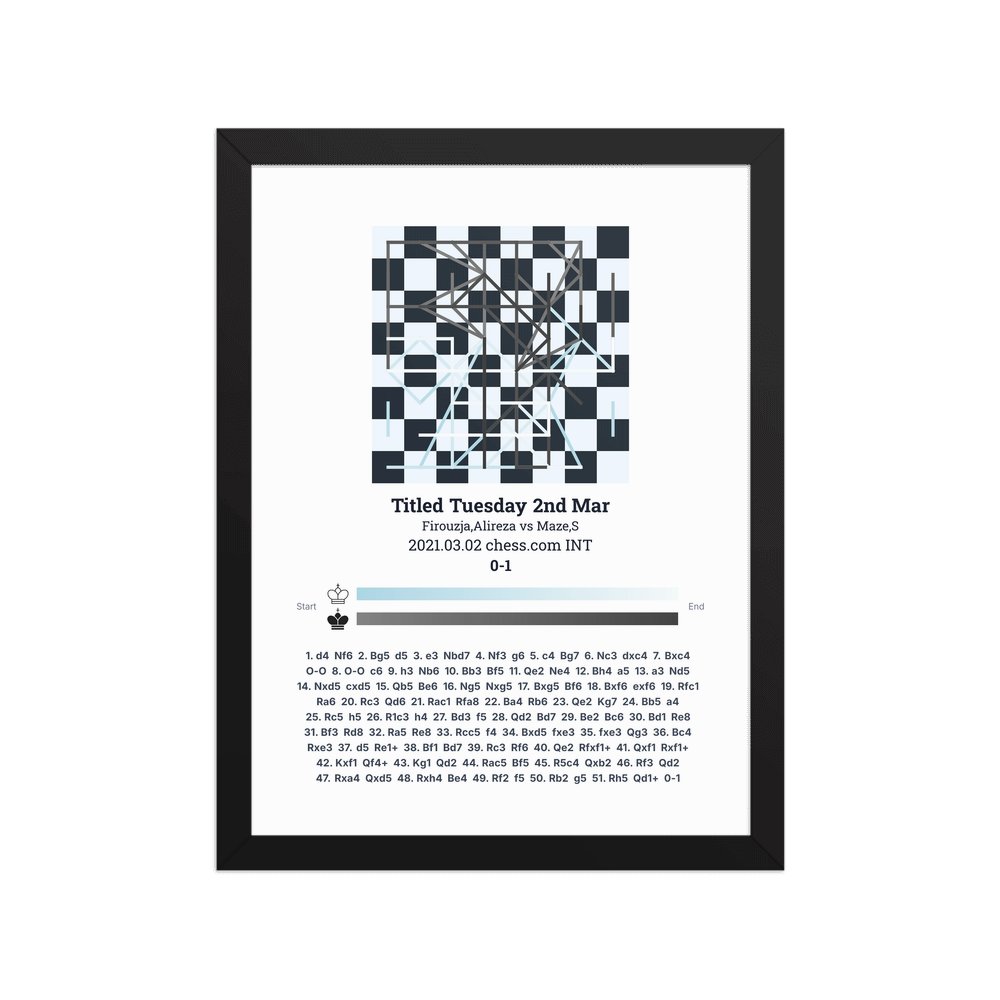 Museum-quality poster on thick, durable matte paper. A sharp, clean look for any chess visualisation.