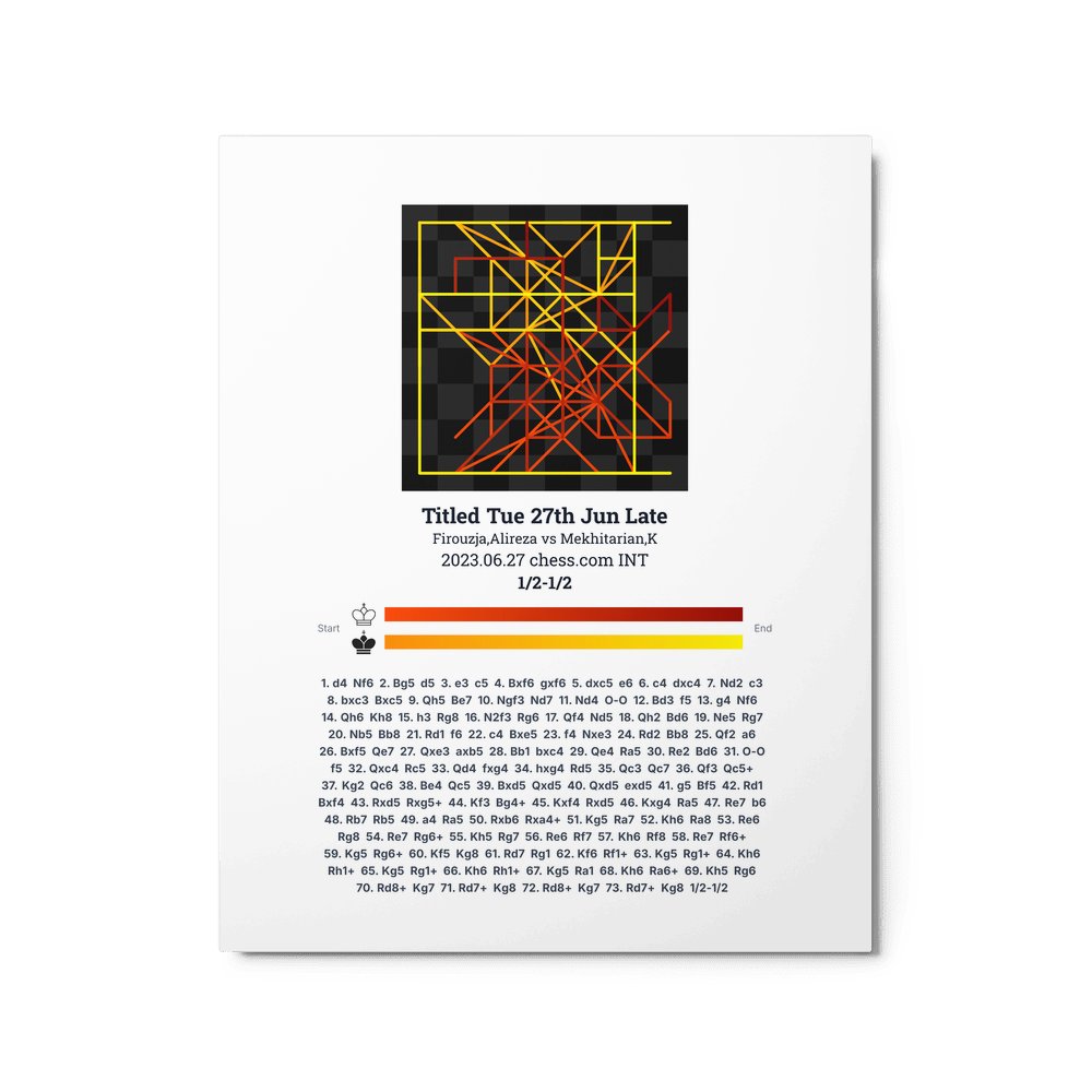 Museum-quality poster on thick, durable matte paper. A sharp, clean look for any chess visualisation.