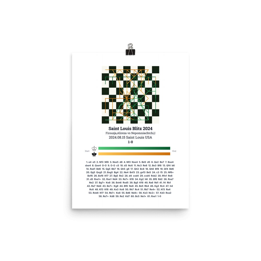 Museum-quality poster on thick, durable matte paper. A sharp, clean look for any chess visualisation.