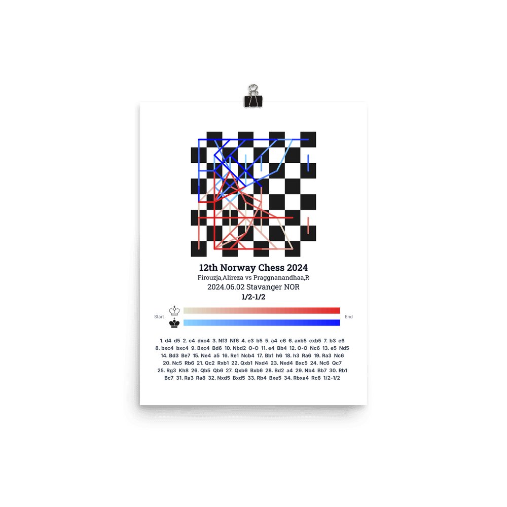 Museum-quality poster on thick, durable matte paper. A sharp, clean look for any chess visualisation.
