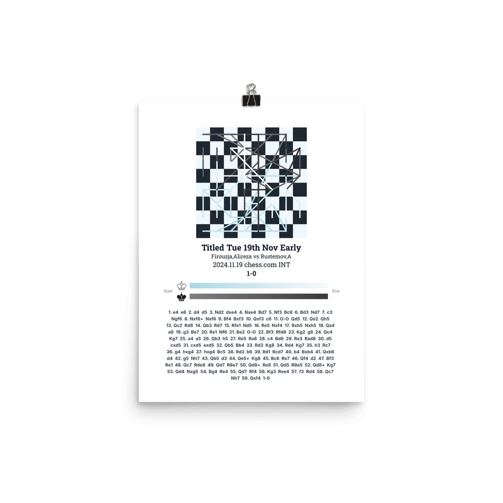 Museum-quality poster on thick, durable matte paper. A sharp, clean look for any chess visualisation.