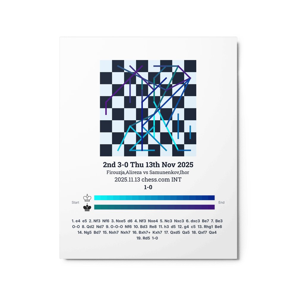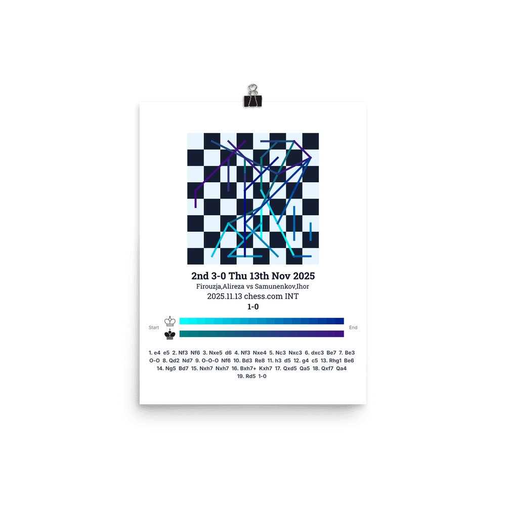 Museum-quality poster on thick, durable matte paper. A sharp, clean look for any chess visualisation.
