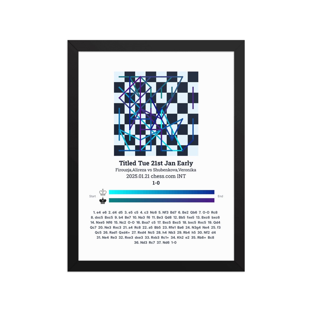 Museum-quality poster on thick, durable matte paper. A sharp, clean look for any chess visualisation.