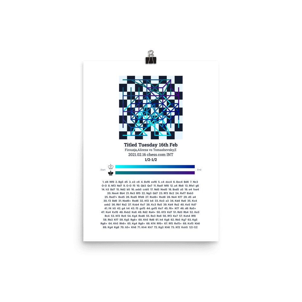 Museum-quality poster on thick, durable matte paper. A sharp, clean look for any chess visualisation.
