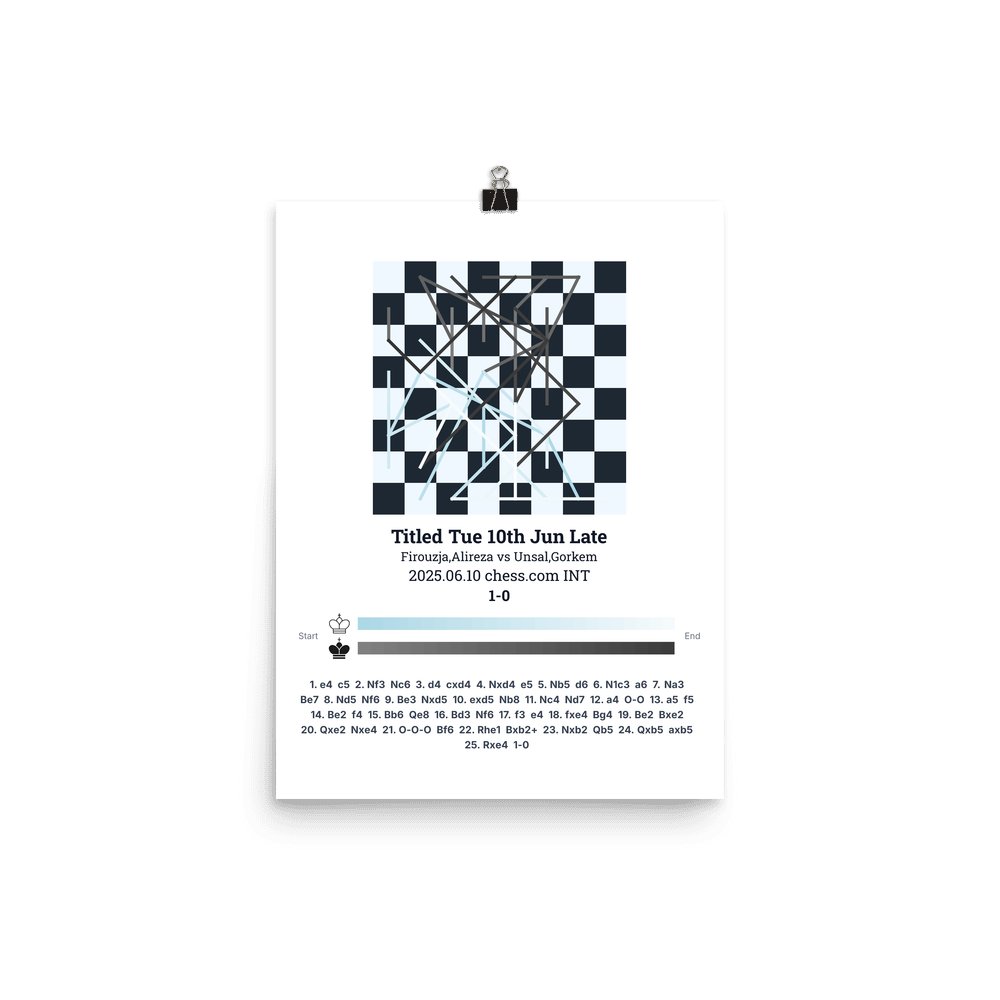 Museum-quality poster on thick, durable matte paper. A sharp, clean look for any chess visualisation.