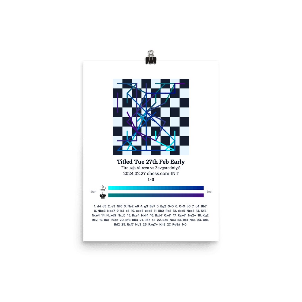 Museum-quality poster on thick, durable matte paper. A sharp, clean look for any chess visualisation.