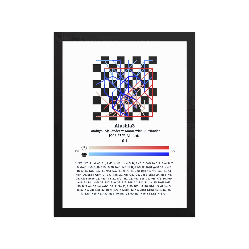 Museum-quality poster on thick, durable matte paper. A sharp, clean look for any chess visualisation.
