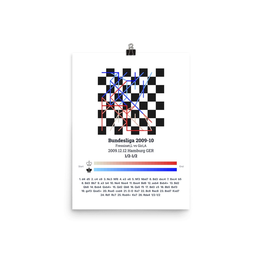Museum-quality poster on thick, durable matte paper. A sharp, clean look for any chess visualisation.