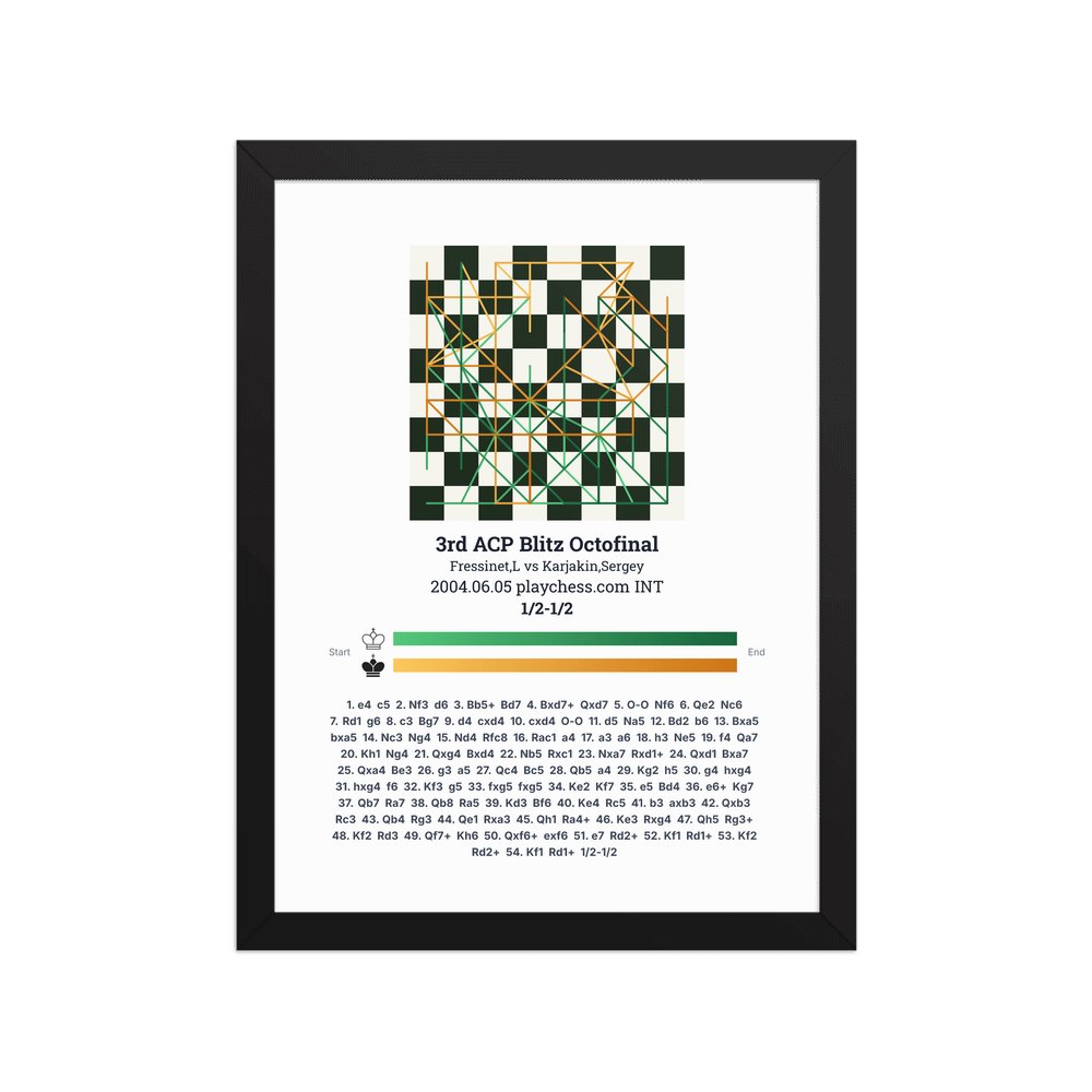 Museum-quality poster on thick, durable matte paper. A sharp, clean look for any chess visualisation.
