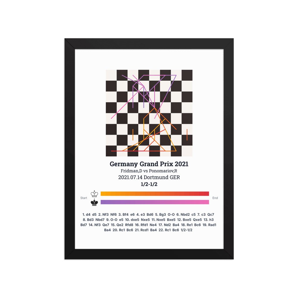 Museum-quality poster on thick, durable matte paper. A sharp, clean look for any chess visualisation.