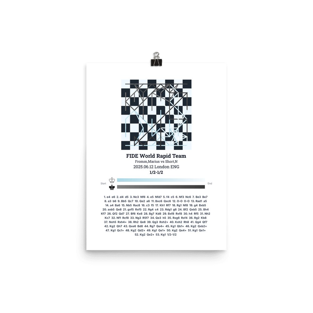 Museum-quality poster on thick, durable matte paper. A sharp, clean look for any chess visualisation.