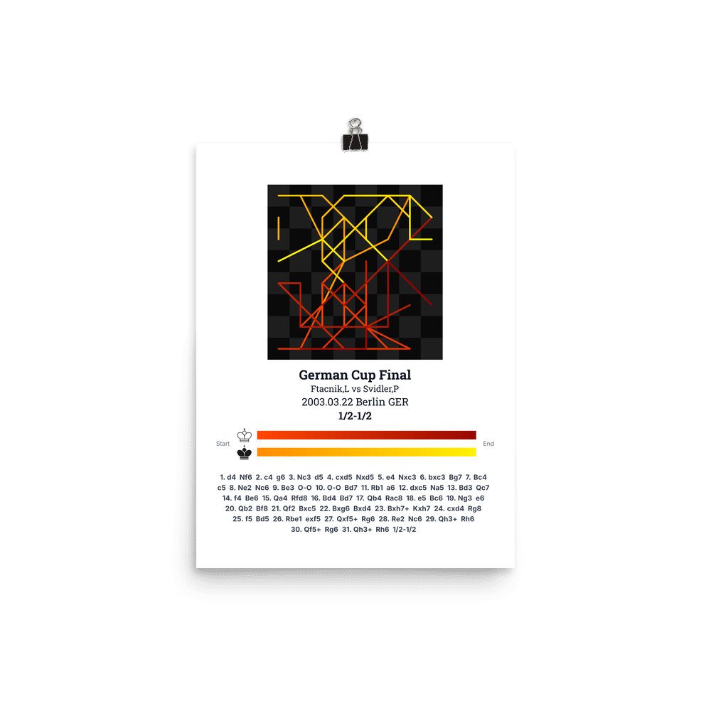 Museum-quality poster on thick, durable matte paper. A sharp, clean look for any chess visualisation.