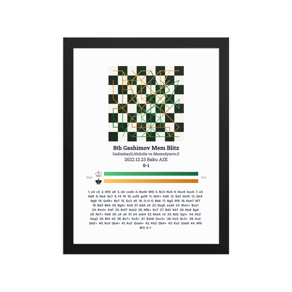 Museum-quality poster on thick, durable matte paper. A sharp, clean look for any chess visualisation.