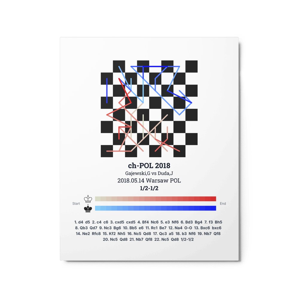 Museum-quality poster on thick, durable matte paper. A sharp, clean look for any chess visualisation.