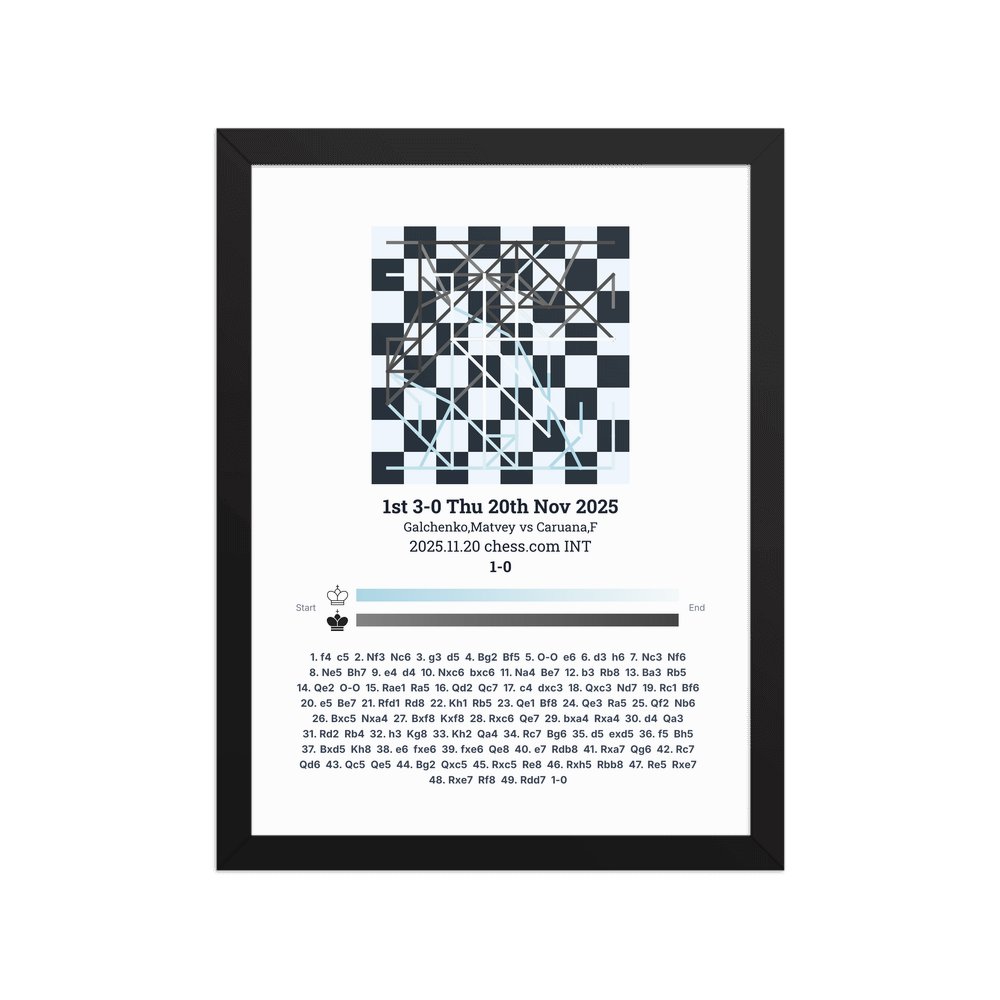 Museum-quality poster on thick, durable matte paper. A sharp, clean look for any chess visualisation.