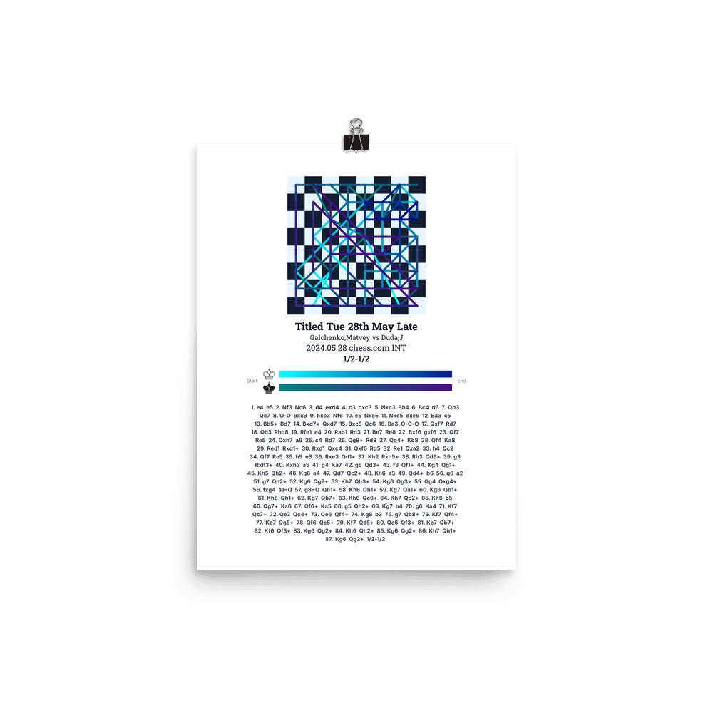 Museum-quality poster on thick, durable matte paper. A sharp, clean look for any chess visualisation.