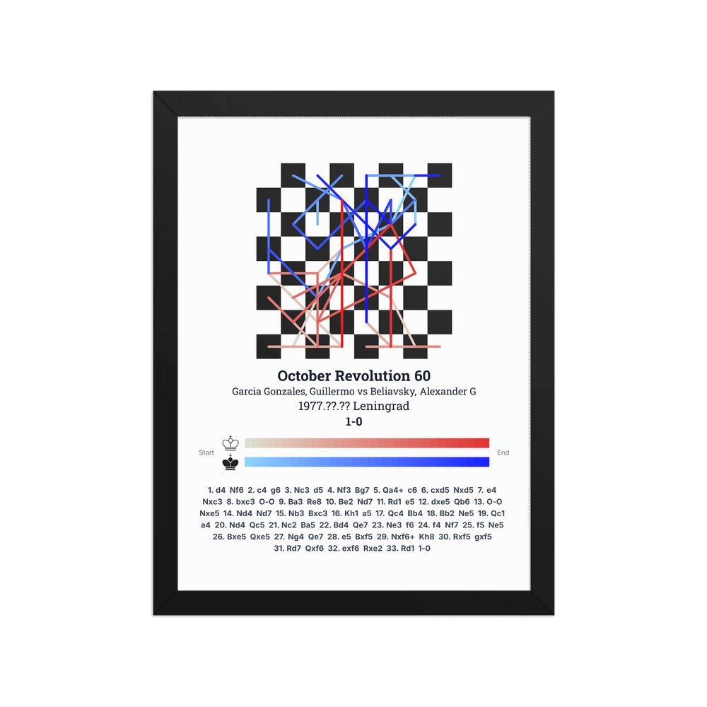 Museum-quality poster on thick, durable matte paper. A sharp, clean look for any chess visualisation.