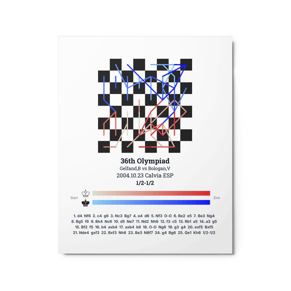 Museum-quality poster on thick, durable matte paper. A sharp, clean look for any chess visualisation.