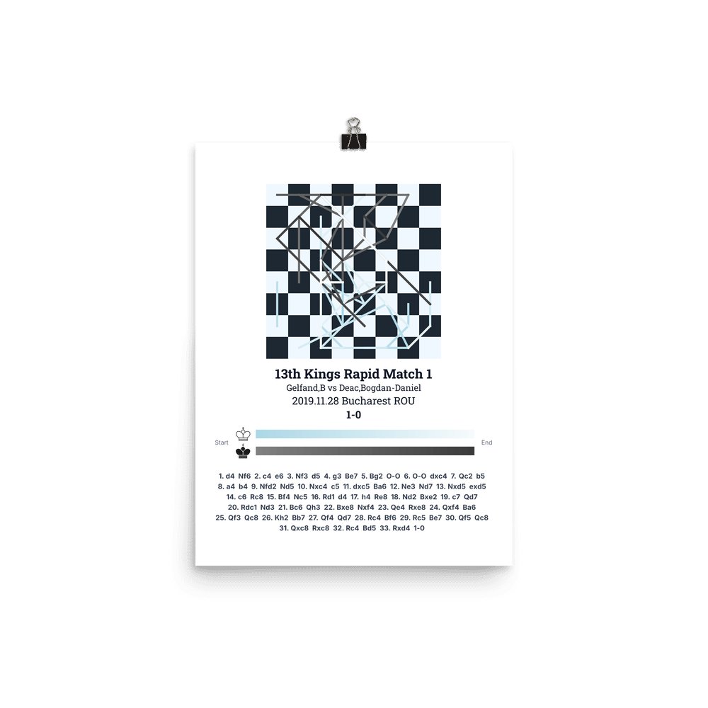 Museum-quality poster on thick, durable matte paper. A sharp, clean look for any chess visualisation.