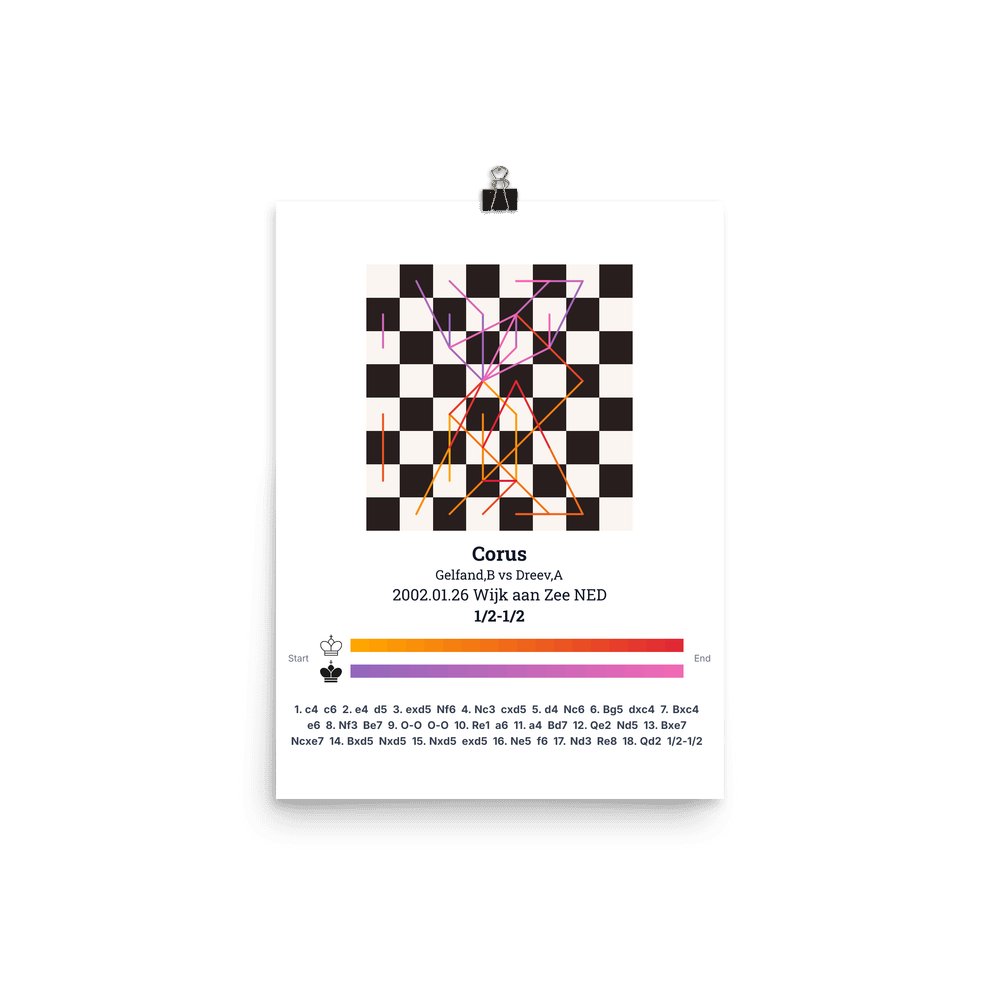Museum-quality poster on thick, durable matte paper. A sharp, clean look for any chess visualisation.