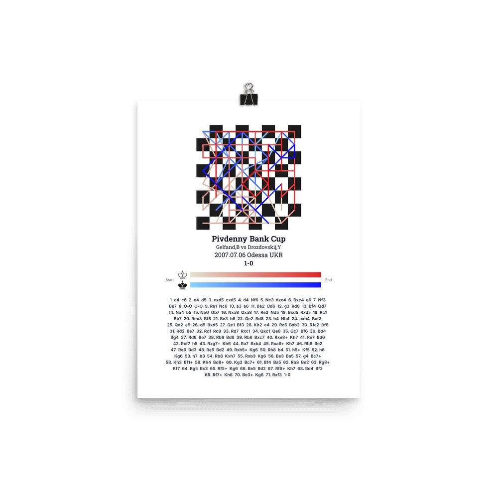 Museum-quality poster on thick, durable matte paper. A sharp, clean look for any chess visualisation.