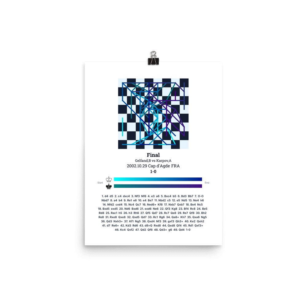 Museum-quality poster on thick, durable matte paper. A sharp, clean look for any chess visualisation.