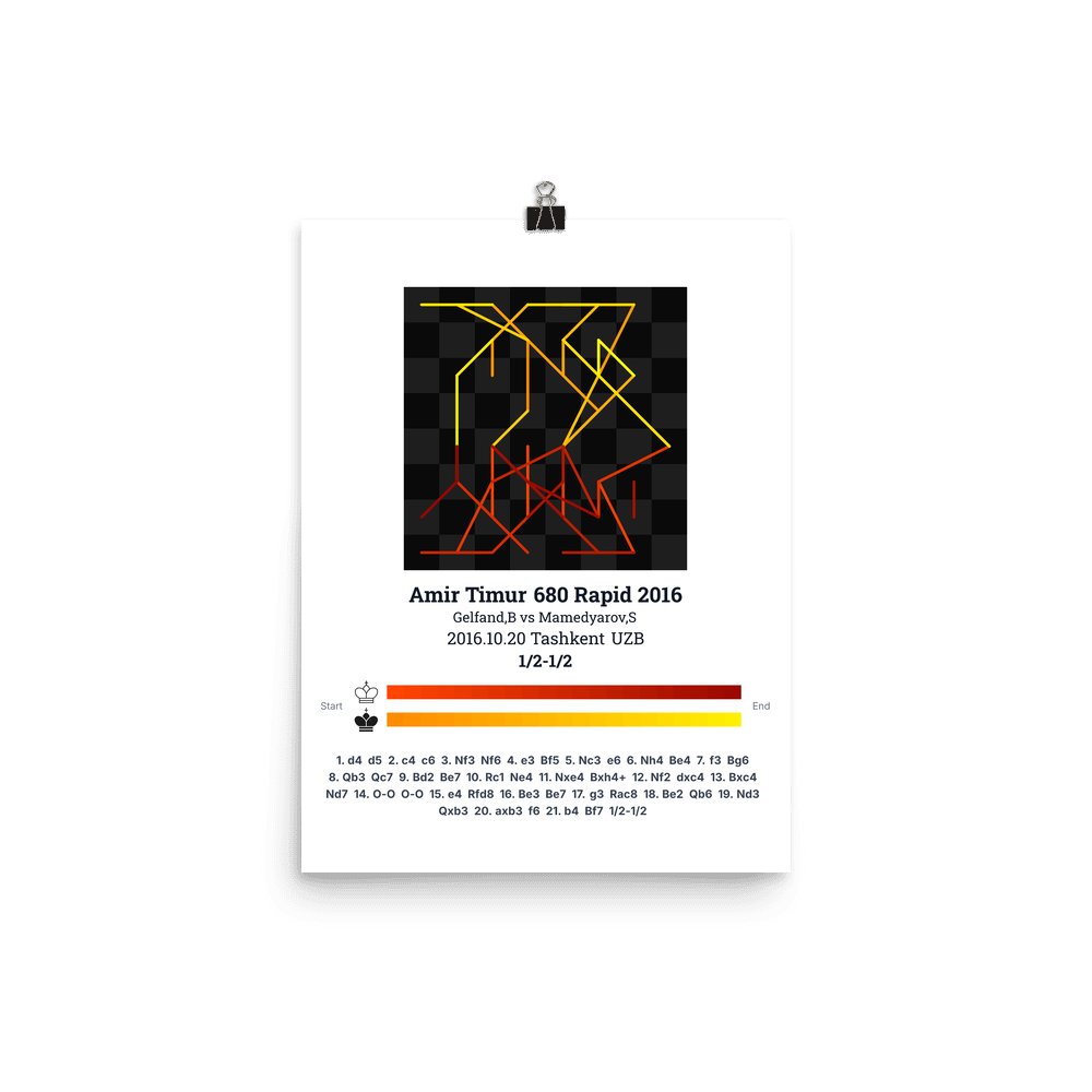 Museum-quality poster on thick, durable matte paper. A sharp, clean look for any chess visualisation.