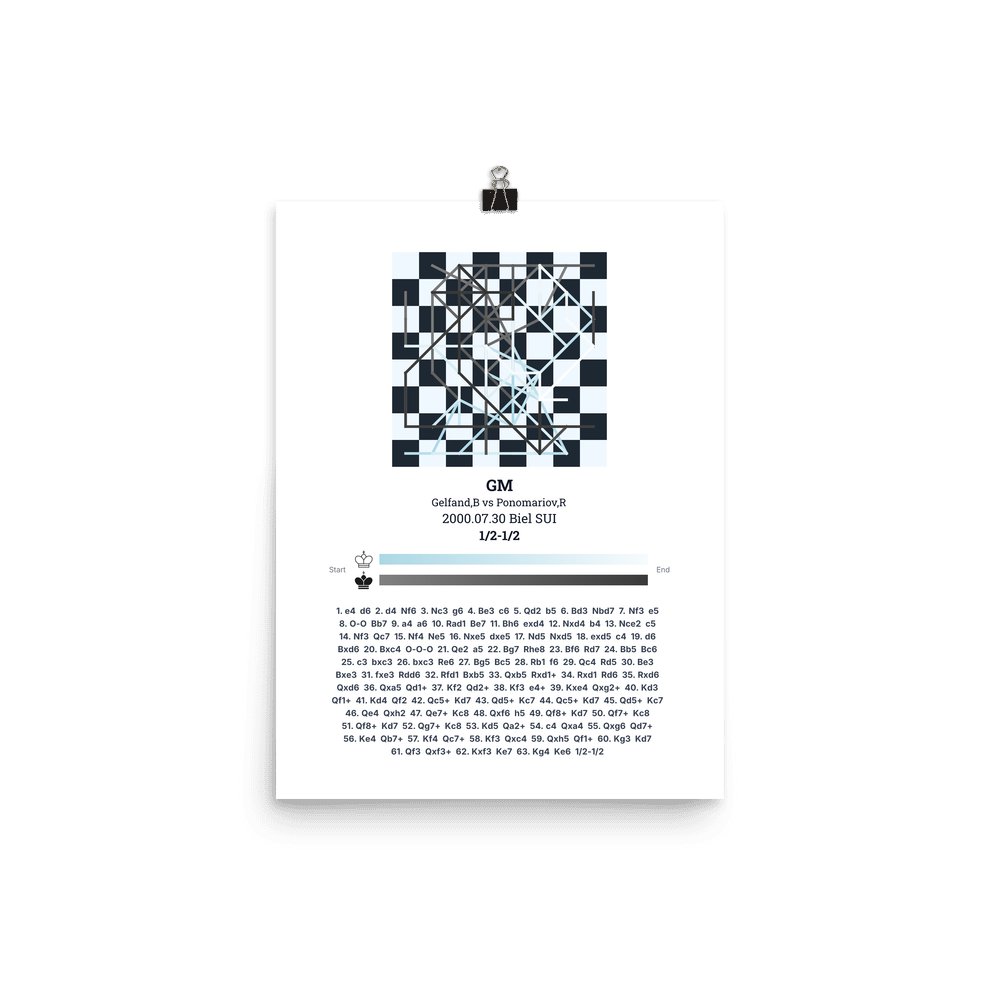 Museum-quality poster on thick, durable matte paper. A sharp, clean look for any chess visualisation.