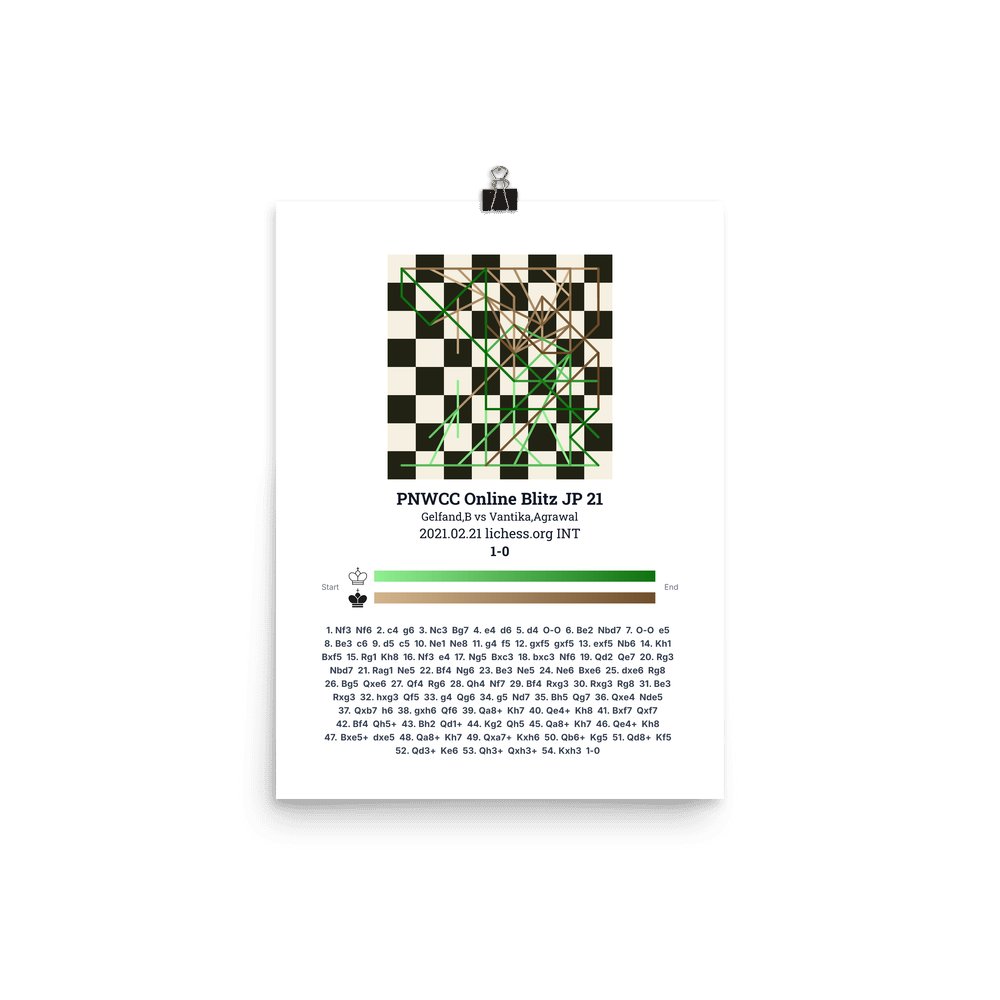 Museum-quality poster on thick, durable matte paper. A sharp, clean look for any chess visualisation.