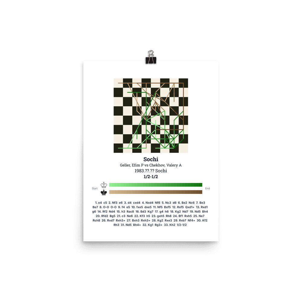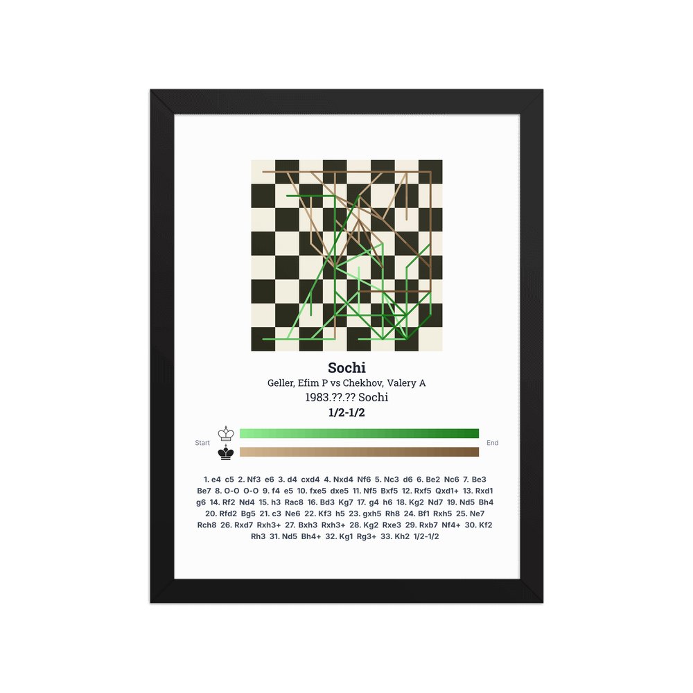 Museum-quality poster on thick, durable matte paper. A sharp, clean look for any chess visualisation.