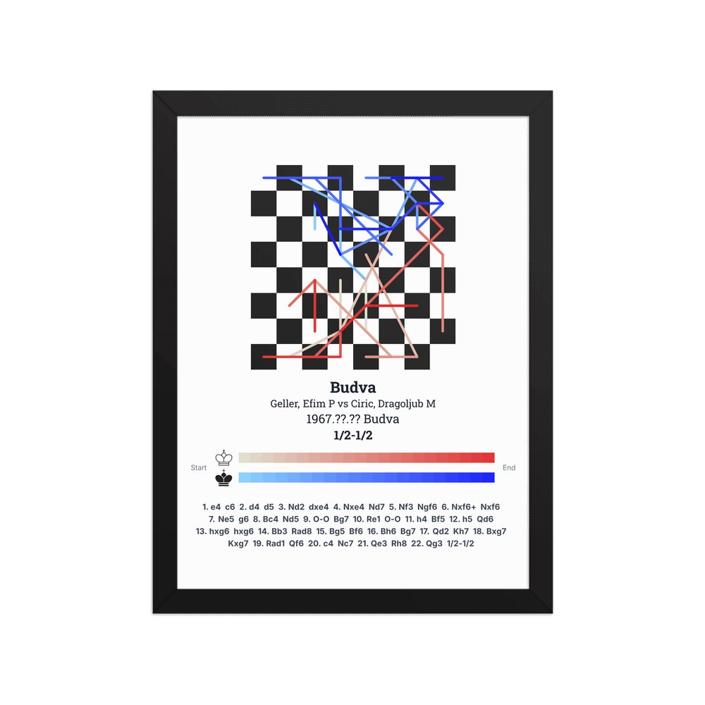 Museum-quality poster on thick, durable matte paper. A sharp, clean look for any chess visualisation.