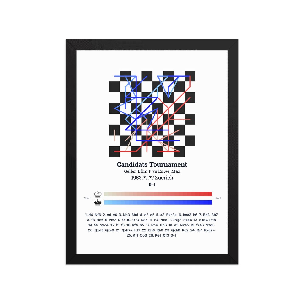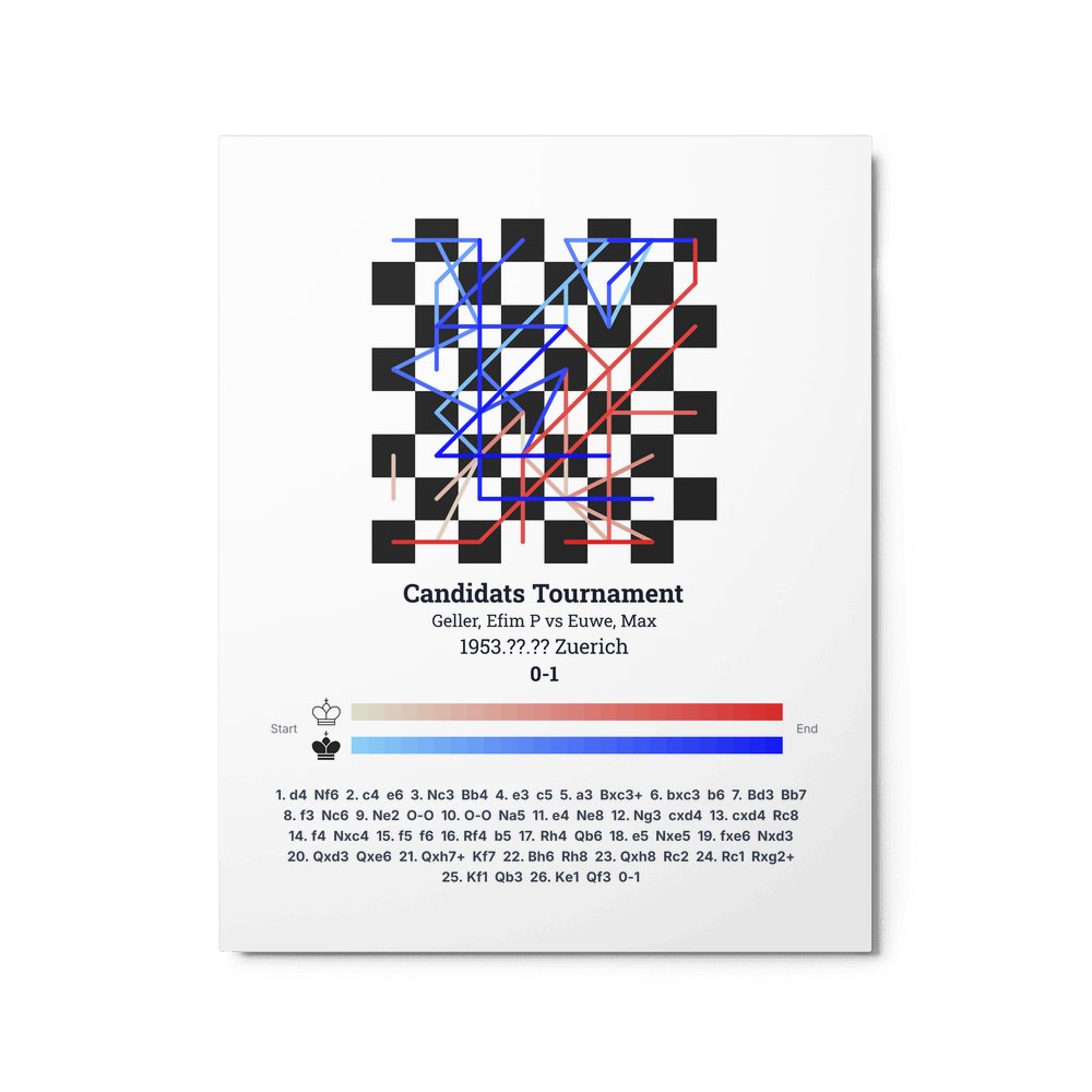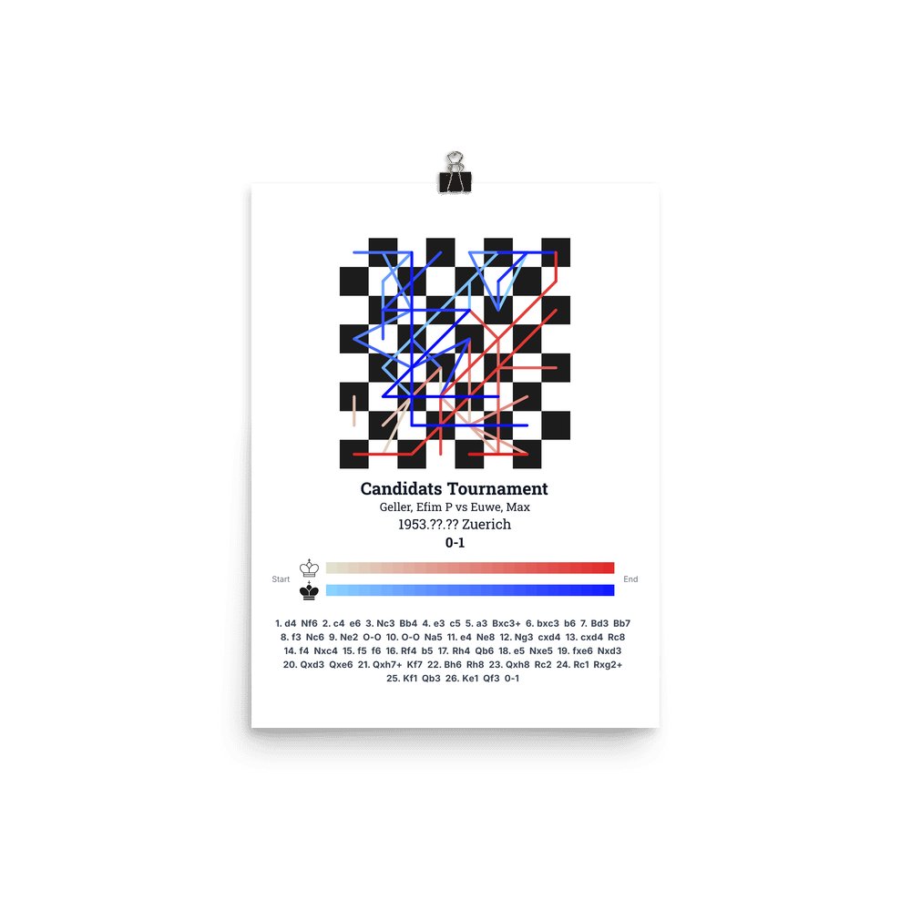 Zurich 1953. The legendary Candidates Tournament — documented in Bronstein's masterwork — produced some of the greatest games of the 20th century. Geller vs Euwe was a highlight, showcasing the depth and dynamism of Soviet chess.
