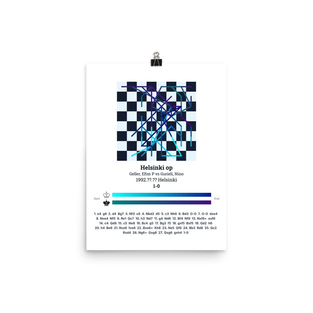 Museum-quality poster on thick, durable matte paper. A sharp, clean look for any chess visualisation.