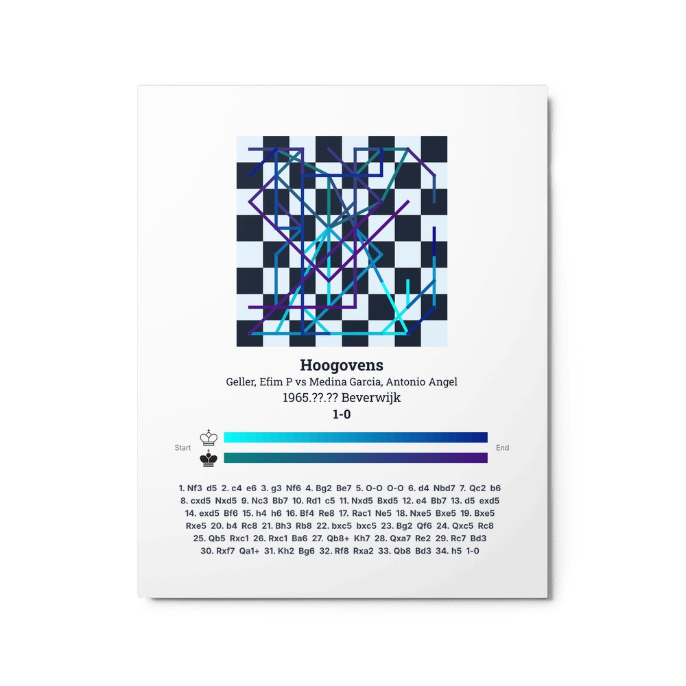 Museum-quality poster on thick, durable matte paper. A sharp, clean look for any chess visualisation.