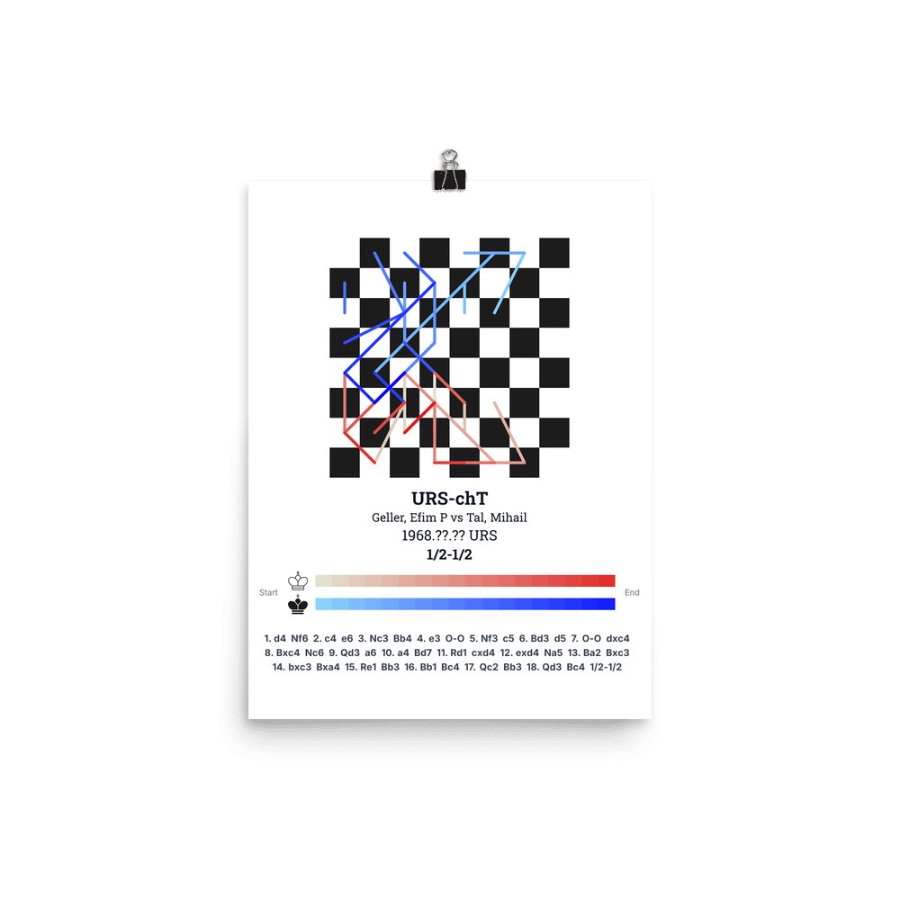 Museum-quality poster on thick, durable matte paper. A sharp, clean look for any chess visualisation.