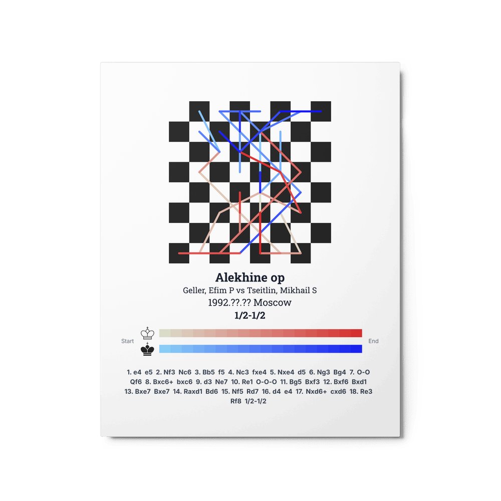 Museum-quality poster on thick, durable matte paper. A sharp, clean look for any chess visualisation.